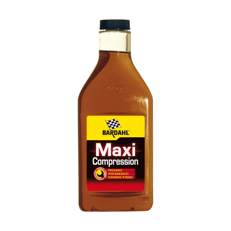 BARDAHL MAXI COMPRESSION — високоефективна присадка до моторної оливи, розроблена для відновлення компресії, стабілізації в’язкісних характеристик при високих температурах та зменшення зношування деталей двигуна. Формула містить модифікатори тертя та полімерні компоненти, які ущільнюють зазори, зміцнюють масляну плівку та покращують роботу двигуна в умовах підвищених навантажень.
